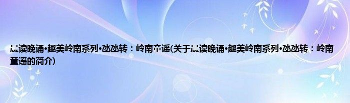 大家好,晨读晚诵·趣美岭南系列·氹氹转:岭南童谣,关于晨读晚诵·趣美岭南系列·氹氹转:岭南童谣的简介很多人还不知道,现在让我们一起来看看吧!