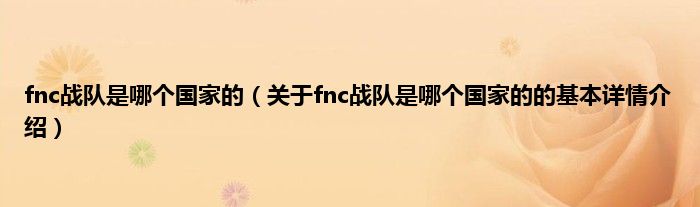 本文关于fnc战队是哪个国家的的基本详情介绍就讲解完毕,希望对大家有所帮助。