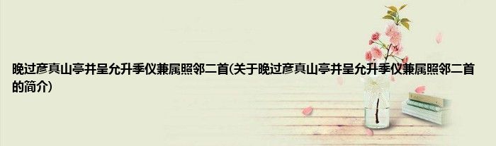 本文关于晚过彦真山亭并呈允升季仪兼属照邻二首的简介就讲解完毕,希望对大家有所帮助。