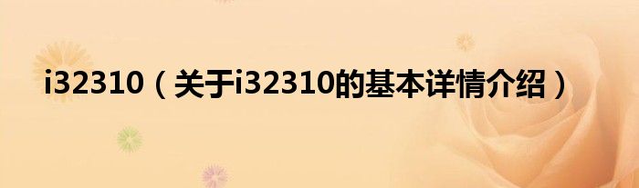本文关于i32310的基本详情介绍就讲解完毕,希望对大家有所帮助。