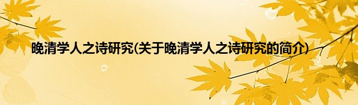 本文关于晚清学人之诗研究的简介就讲解完毕,希望对大家有所帮助。