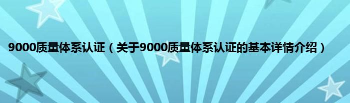 9000质量体系认证(关于9000质量体系认证的基本详情介绍)