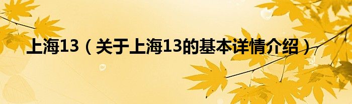 本文关于上海13的基本详情介绍就讲解完毕,希望对大家有所帮助。
