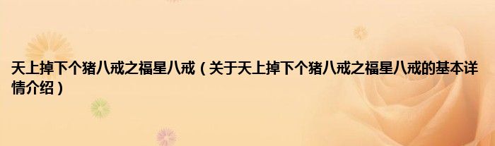 本文关于天上掉下个猪八戒之福星八戒的基本详情介绍就讲解完毕,希望对大家有所帮助。