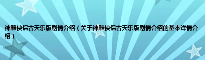 本文关于神雕侠侣古天乐版剧情介绍的基本详情介绍就讲解完毕,希望对大家有所帮助。