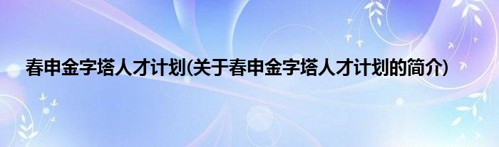 本文关于春申金字塔人才计划的简介就讲解完毕,希望对大家有所帮助。