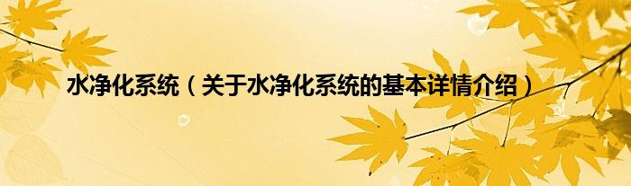 本文关于水净化系统的基本详情介绍就讲解完毕,希望对大家有所帮助。