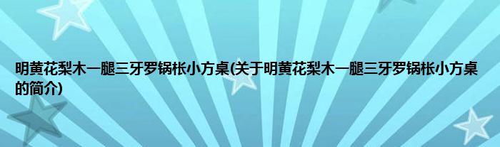 大家好,明黄花梨木一腿三牙罗锅枨小方桌,关于明黄花梨木一腿三牙罗锅枨小方桌的简介很多人还不知道,现在让我们一起来看看吧!