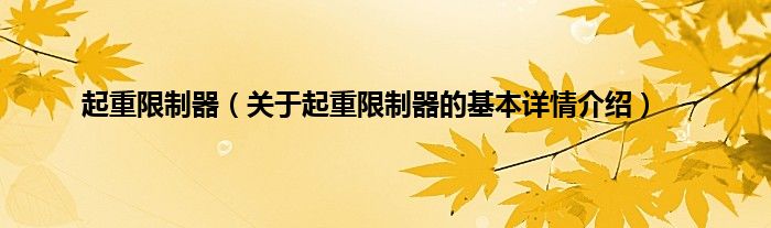 本文关于起重限制器的基本详情介绍就讲解完毕,希望对大家有所帮助。