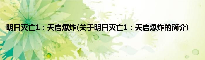 大家好,明日灭亡1:天启爆炸,关于明日灭亡1:天启爆炸的简介很多人还不知道,现在让我们一起来看看吧!