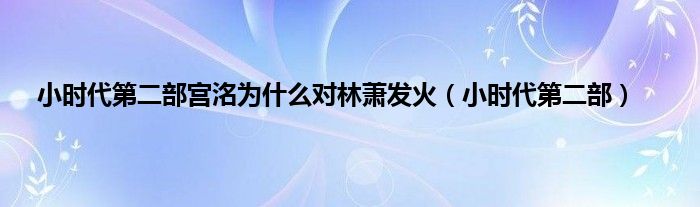 大家好,小问来为大家解答以上问题。小时代第二部宫洺为什么对林萧发火,小时代第二部这个很多人还不知道,现在让我们一起来看看吧!