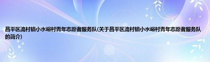 昌平区流村镇小水峪村青年志愿者服务队(关于昌平区流村镇小水峪村青年志愿者服务队的简介)