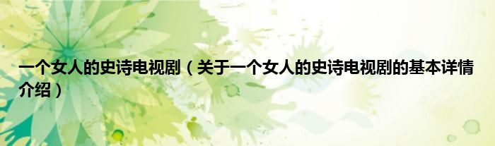本文关于一个女人的史诗电视剧的基本详情介绍就讲解完毕,希望对大家有所帮助。