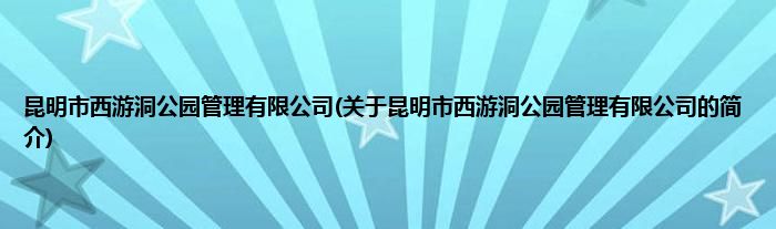 本文关于昆明市西游洞公园管理有限公司的简介就讲解完毕,希望对大家有所帮助。