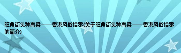 本文关于旺角街头种高粱——香港风俗拾零的简介就讲解完毕,希望对大家有所帮助。