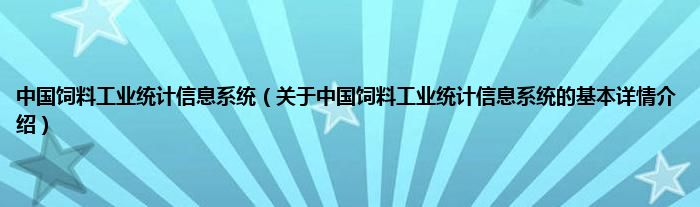 本文关于中国饲料工业统计信息系统的基本详情介绍就讲解完毕,希望对大家有所帮助。