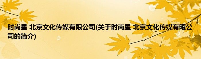本文关于时尚星 北京文化传媒有限公司的简介就讲解完毕,希望对大家有所帮助。