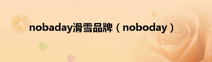 大家好,小问来为大家解答以上问题。nobaday滑雪品牌,noboday这个很多人还不知道,现在让我们一起来看看吧!