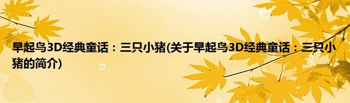 本文关于早起鸟3D经典童话:三只小猪的简介就讲解完毕,希望对大家有所帮助。