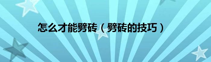 大家好,小问来为大家解答以上问题。怎么才能劈砖,劈砖的技巧这个很多人还不知道,现在让我们一起来看看吧!