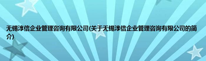 无锡淳信企业管理咨询有限公司(关于无锡淳信企业管理咨询有限公司的简介)