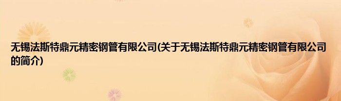 本文关于无锡法斯特鼎元精密钢管有限公司的简介就讲解完毕,希望对大家有所帮助。