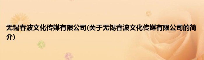本文关于无锡春波文化传媒有限公司的简介就讲解完毕,希望对大家有所帮助。