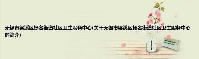 本文关于无锡市梁溪区扬名街道社区卫生服务中心的简介就讲解完毕,希望对大家有所帮助。