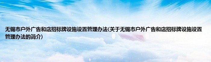本文关于无锡市户外广告和店招标牌设施设置管理办法的简介就讲解完毕,希望对大家有所帮助。