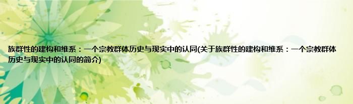 本文关于族群性的建构和维系:一个宗教群体历史与现实中的认同的简介就讲解完毕,希望对大家有所帮助。