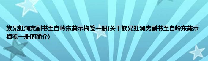 本文关于族兄虹涧宪副书至自岭东兼示梅笺一册的简介就讲解完毕,希望对大家有所帮助。