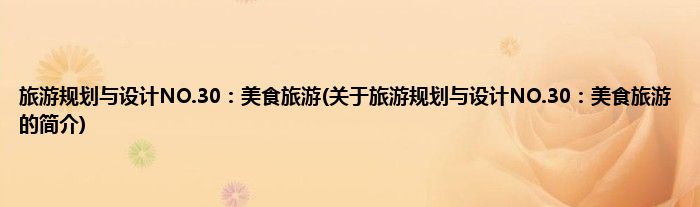 大家好,旅游规划与设计NO.30:美食旅游,关于旅游规划与设计NO.30:美食旅游的简介很多人还不知道,现在让我们一起来看看吧!