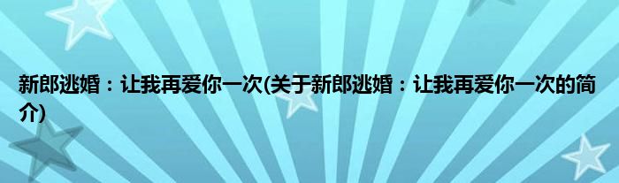 大家好,新郎逃婚:让我再爱你一次,关于新郎逃婚:让我再爱你一次的简介很多人还不知道,现在让我们一起来看看吧!