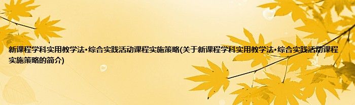 大家好,新课程学科实用教学法·综合实践活动课程实施策略,关于新课程学科实用教学法·综合实践活动课程实施策略的简介很多人还不知道,现在让我们一起来看看吧!
