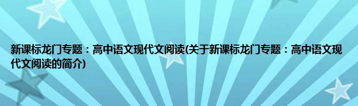 本文关于新课标龙门专题:高中语文现代文阅读的简介就讲解完毕,希望对大家有所帮助。