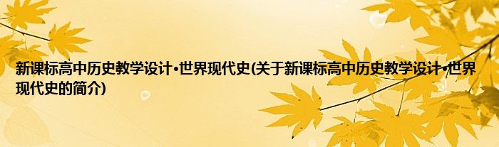 本文关于新课标高中历史教学设计·世界现代史的简介就讲解完毕,希望对大家有所帮助。