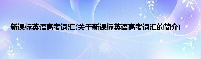 本文关于新课标英语高考词汇的简介就讲解完毕,希望对大家有所帮助。