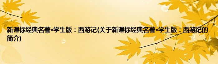 本文关于新课标经典名著·学生版:西游记的简介就讲解完毕,希望对大家有所帮助。