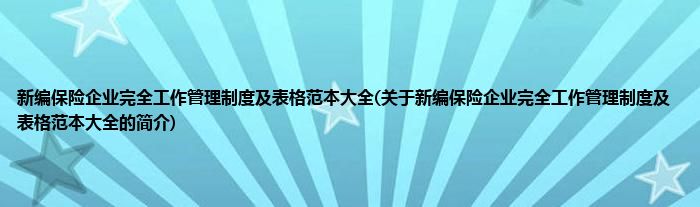 新编保险企业完全工作管理制度及表格范本大全(关于新编保险企业完全工作管理制度及表格范本大全的简介)