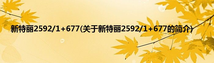 本文关于新特丽2592/1+677的简介就讲解完毕,希望对大家有所帮助。