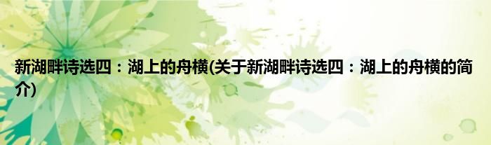 本文关于新湖畔诗选四:湖上的舟横的简介就讲解完毕,希望对大家有所帮助。