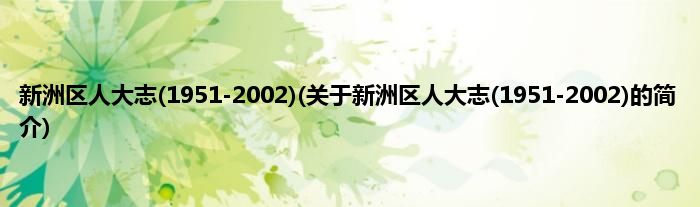 1、 《新洲区人大志(1951-2002)》是《阳新县人民代表大会志》编纂委员会编纂的地方志。