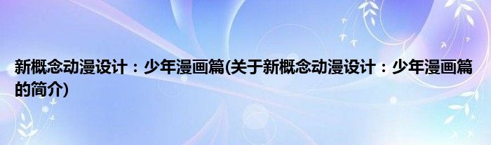 新概念动漫设计:少年漫画篇(关于新概念动漫设计:少年漫画篇的简介)