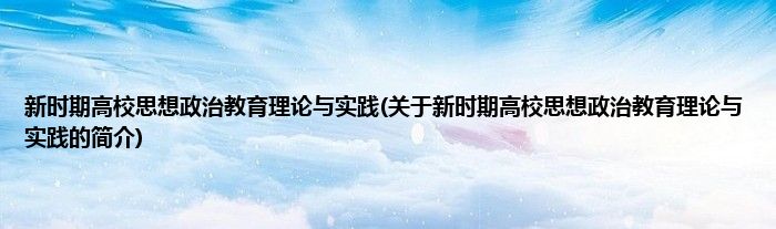 新时期高校思想政治教育理论与实践(关于新时期高校思想政治教育理论与实践的简介)