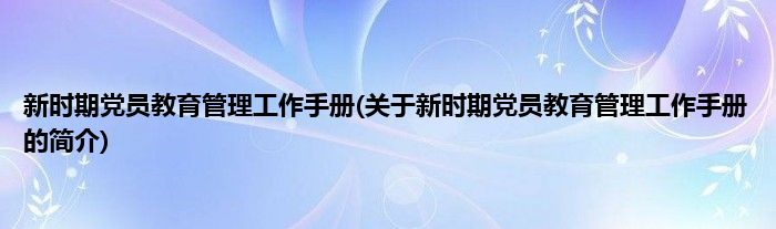 新时期党员教育管理工作手册(关于新时期党员教育管理工作手册的简介)