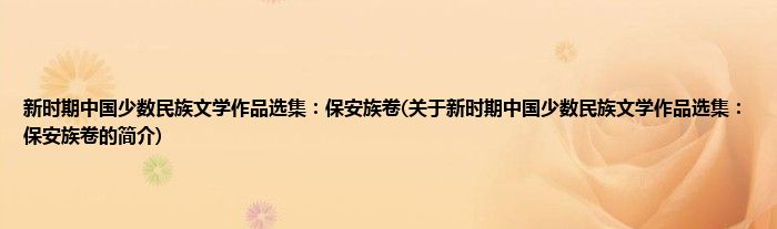 1、 《新时期中国少数民族文学作品选集:保安族卷》是2015年作家出版社出版的图书。