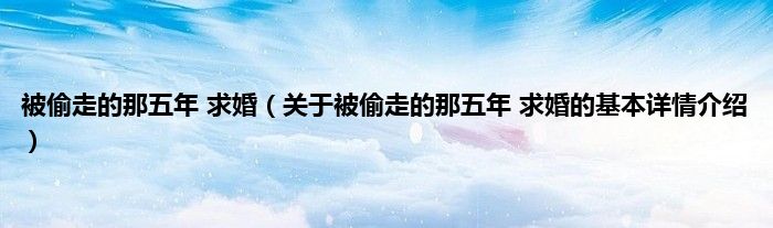 本文关于被偷走的那五年 求婚的基本详情介绍就讲解完毕,希望对大家有所帮助。