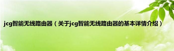 本文关于jcg智能无线路由器的基本详情介绍就讲解完毕,希望对大家有所帮助。