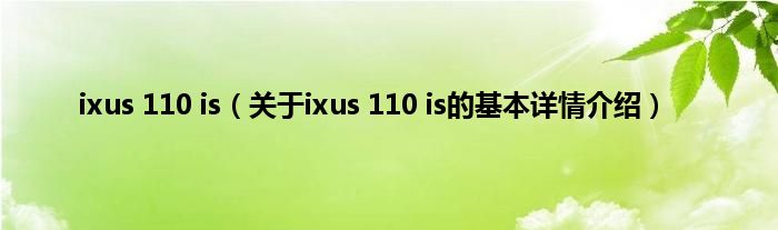 本文关于ixus 110 is的基本详情介绍就讲解完毕,希望对大家有所帮助。