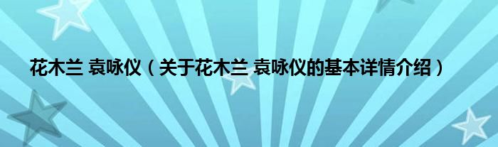 本文关于花木兰 袁咏仪的基本详情介绍就讲解完毕,希望对大家有所帮助。